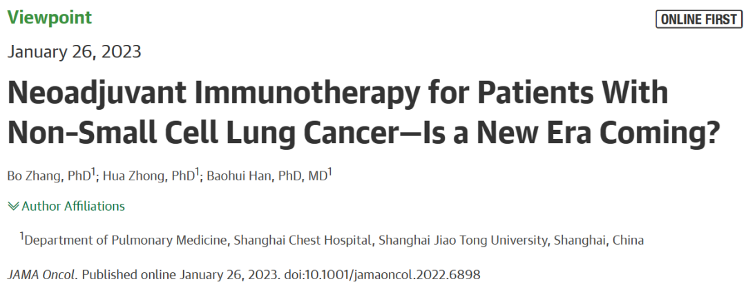 韩宝惠教授、钟华教授JAMA Oncology发文,详细讨论肺癌新辅助免疫治疗的应用及未来发展