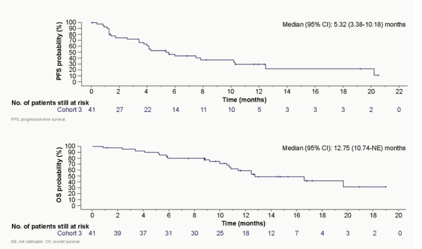 TROPHY-U-01队列3结果更新:既往接受过含铂化疗后疾病快速进展的mUC患者,SG联合帕博利珠单抗治疗ORR为41%,中位OS为12.8个月[9]