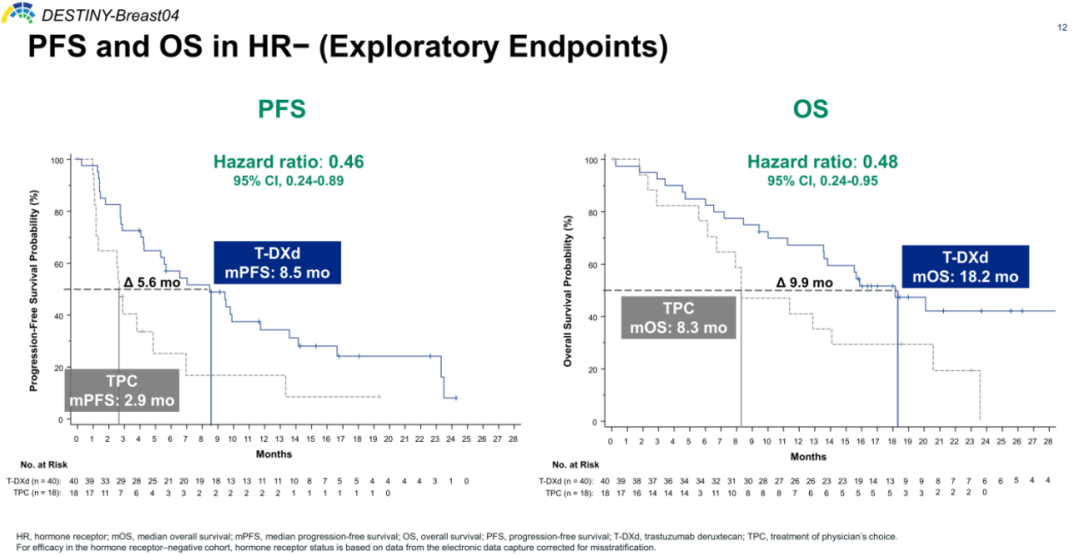 图4.DESTINY-Breast04研究HR-亚组的PFS和OS