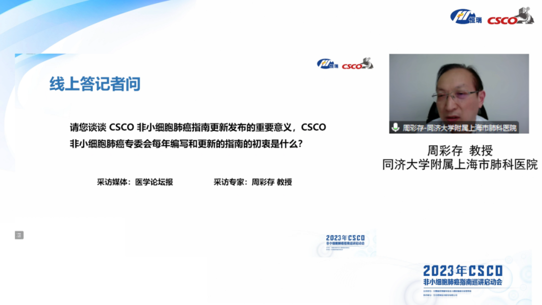 本篇章由周彩存教授主持,多家医学专业媒体针对指南更新相关问题采访了与会专家。