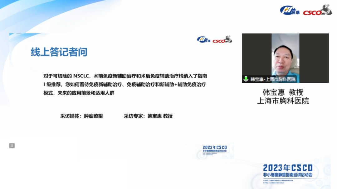 2023年5月24日,由中国临床肿瘤学会(CSCO)非小细胞肺癌专家委员会主办、江苏恒瑞医药协办的“2023年CSCO非小细胞肺癌指南巡讲启动会”成功举办,开启了2023年中国非小细胞肺癌(NSCLC)领域规范化诊疗的新征程。弦歌不辍,随着业内专家的巡讲之声,《2023CSCO非小细胞肺癌诊疗指南》(以下简称2023CSCO指南)的一系列重要更新及其背后的循证医学依据将深入到不同层级的医疗机构,帮助广大患者获得规范化、同质化的诊疗服务和最大化的生存获益。
