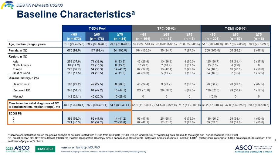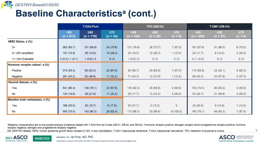 ASCO 2023汇总分析:T-DXd在≥65岁老年患者中具有良好的风险获益比