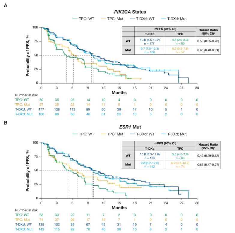 胡夕春教授:我们知道HER2和ESR1突变是预后不良的因素,PIK3CA突变也是一个不良的预后标志物。DB-04研究中似乎没有提及影响预后的因素。您对此有何评价?