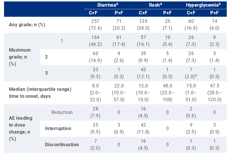 药物毒性是一个亟需解决的问题。本届ASCO大会报告了CAPItello-291研究的常见不良事件(AE;摘要号:1067),详细分析结果显示,腹泻、皮疹和高血糖是最常报告的与AKT通路抑制相关的不良事件。但总体来说,接受Capivasertib+氟维司群治疗的患者耐受性良好,且相关不良事件多发生在早期,通常级别较低,易于管理。