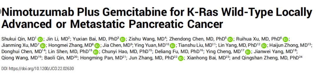 尼妥珠单抗能改变胰腺癌治疗格局?秦叔逵教授和李进教授领衔的NOTABLE研究成果荣登J CLIN ONCOL