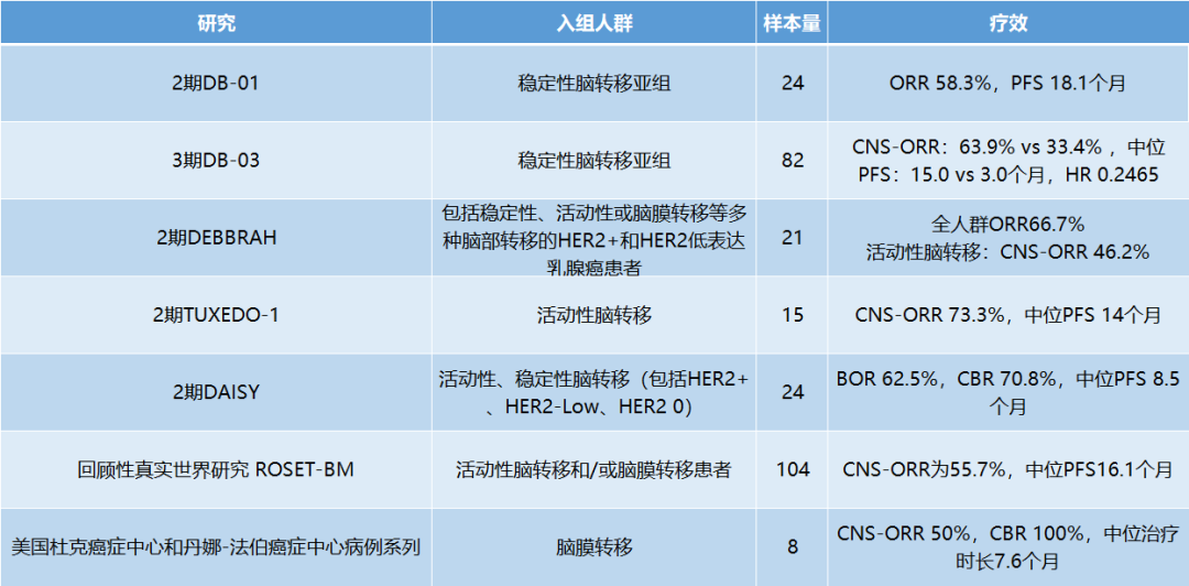 表2.T-DXd治疗HER2+乳腺癌脑转移患者的研究汇总