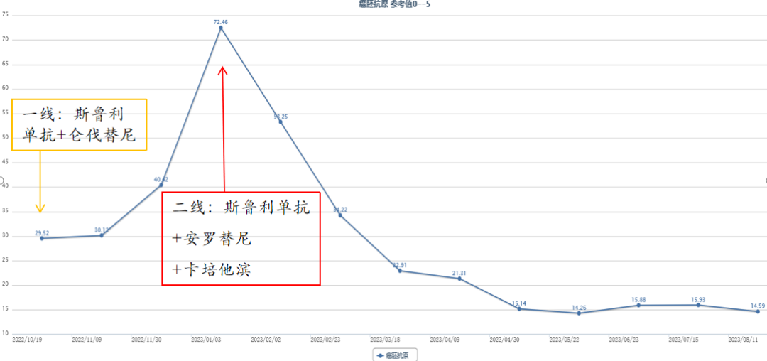 2023-7-15复查胸腹CT图片,疗效评估为SD,轻度双上肢麻木,生活不受影响。