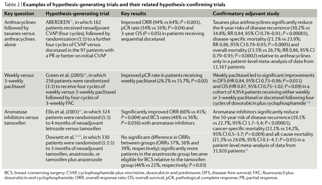 编者按:乳腺癌是一种复杂的异质性疾病,是全球女性中最常见的恶性肿瘤,2022年仅美国有290,000例乳腺癌新发病例1和43,000例死亡病例为公共卫生带来严峻考验。在过去的一个世纪里,乳腺癌的治疗从严格的手术治疗发展到多学科治疗,包括了化疗、放疗、靶向治疗、免疫治疗等,为患者获益带来极大改善。《Nature Reviews Clinical Oncology》的一篇综述回顾从前基因组时代到后基因组时代的(新)辅助治疗试验的演变,为新辅助治疗研究设计、研究终点选取和个体化精准治疗提供了参考。