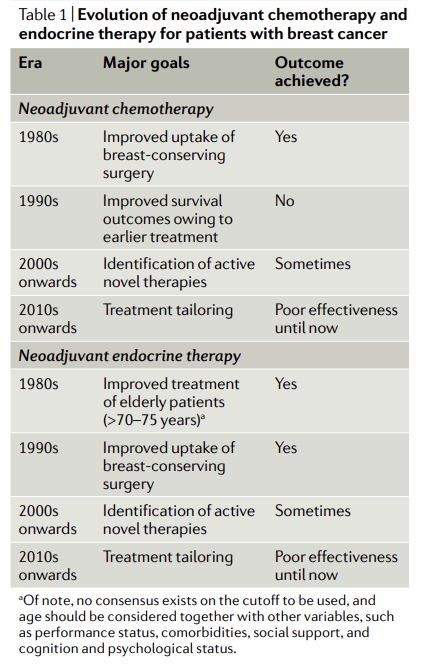 乳腺癌患者新辅助化疗和新辅助内分泌治疗的发展历程