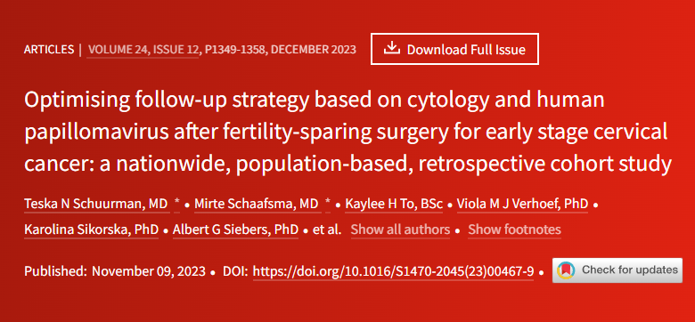 根据阿姆斯特丹荷兰癌症研究所Teska N. Schuurman领导的一项发表在2023年12月的《柳叶刀·肿瘤学》杂志的研究,宫颈癌保留生育功能手术后的随访频率,可根据高危型人乳头瘤病毒(HPV)检测和细胞学结果量身定制。