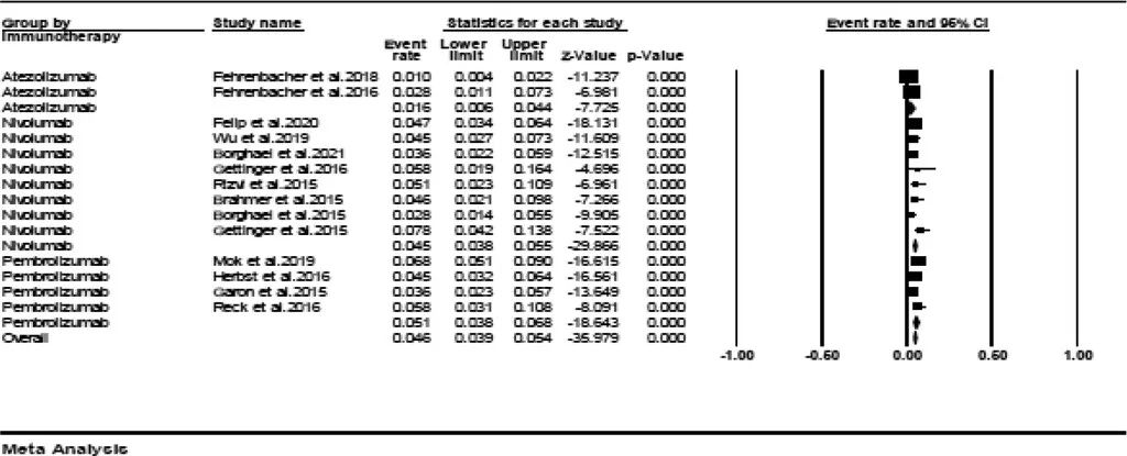 研究人员检索了PubMed、Cochrane Library和谷歌Scholar数据库中截至2023年10月的随机对照试验(RCT)。排除非英文文献、综述、病例报告、正在进行的试验、非随机研究、会议摘要和小细胞肺癌(SCLC)研究。这项荟萃分析包括16项随机对照试验,这些试验纳入了接受PD-1抑制剂(帕博利珠单抗或纳武利尤单抗)或PD-L1抑制剂阿替利珠单抗治疗的转移性NSCLC患者。