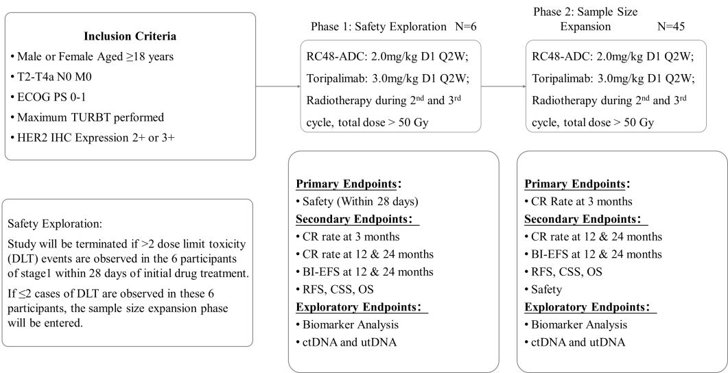 DECIDING研究:一项评估维迪西妥单抗联合特瑞普利单抗和放疗作为HER2过表达的肌层浸润性膀胱癌保膀胱治疗的开放、单臂、多中心临床研究