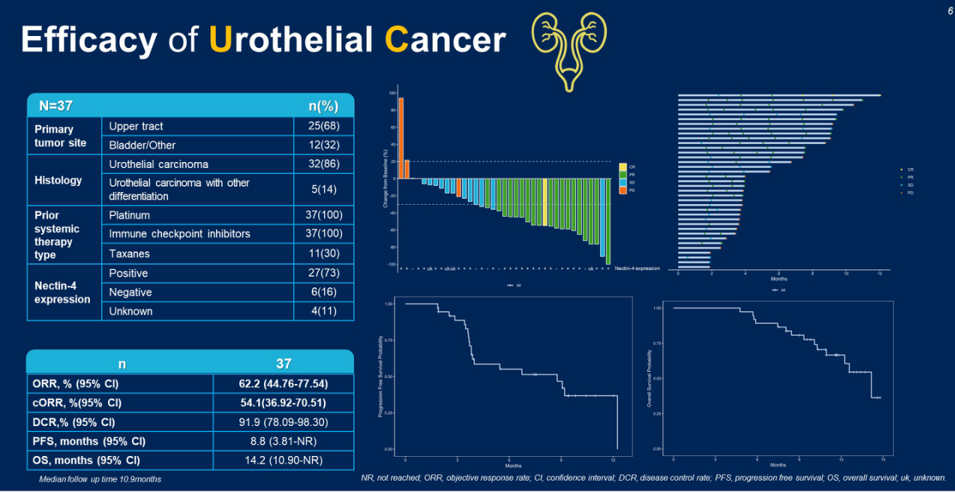 综述之,上述数据表明9MW2821在晚期尿路上皮癌、宫颈癌、食管癌和三阴性乳腺癌中显示出令人鼓舞的疗效。9MW2821是首个针对Nectin-4的ADC药物,在宫颈癌、食管癌和三阴性乳腺癌患者中显示出抗肿瘤活性,安全性特征显示足够的耐受性。