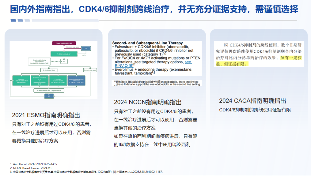 △国内外指南指出,CDK4/6i跨线治疗,并无充分证据支持,需谨慎选择